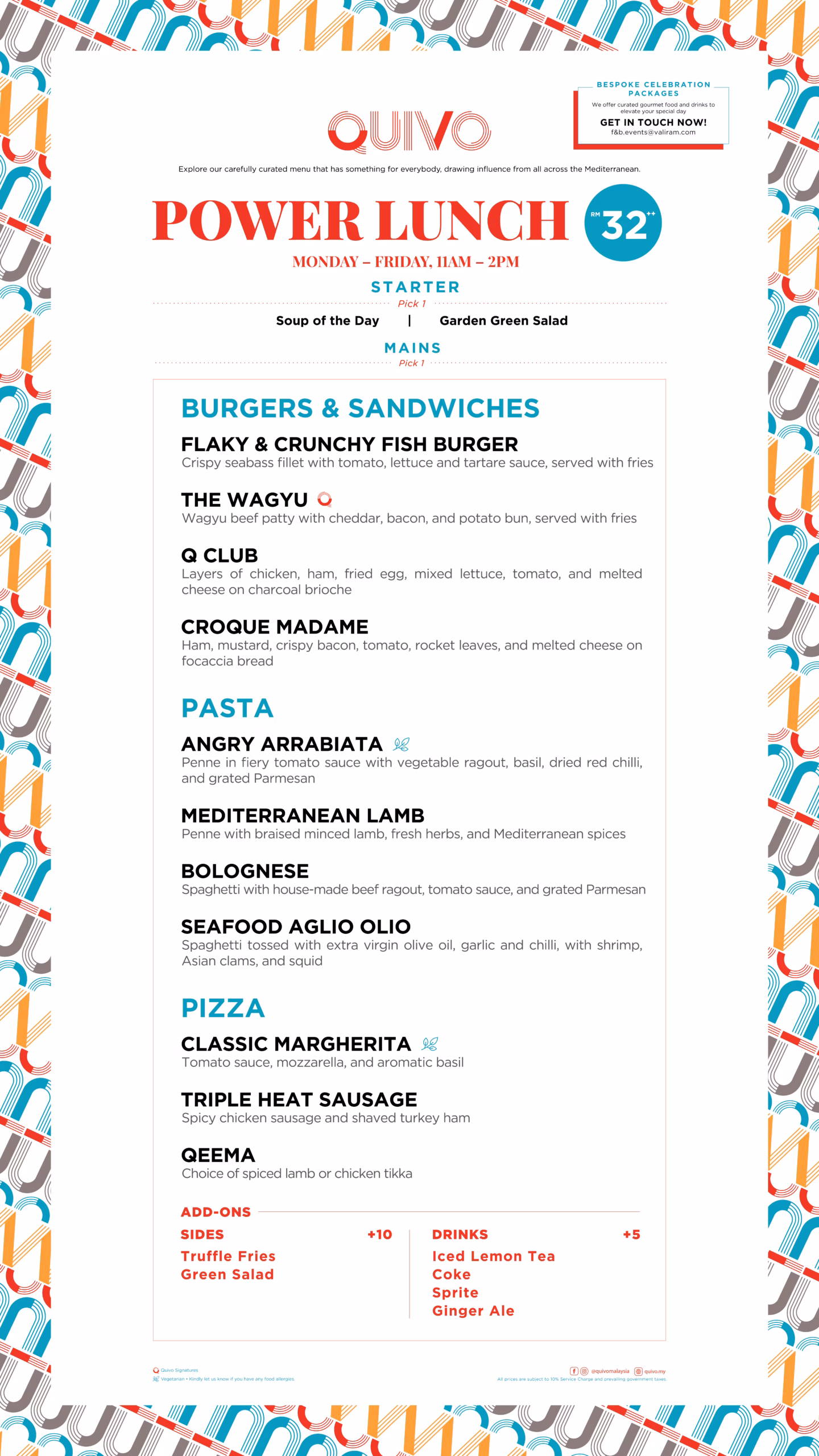 Perfect for quick business lunches or relaxed catch-ups, available Monday to Friday, 11AM – 2PM.